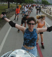 This is a different skate from a Road Rave; mainly it hugs the lake shore trails making all the historic stops of the original skate Oak Street Beach, Navy Pier, the Planetarium and the famous buzz through McCormick Place. Topped off with a brew or a few at Melvin B's, with added attraction Navy Pier for the fireworks, and if you're still on your feet, back to Hange Uppe for dancing. Leave those skates on please. |