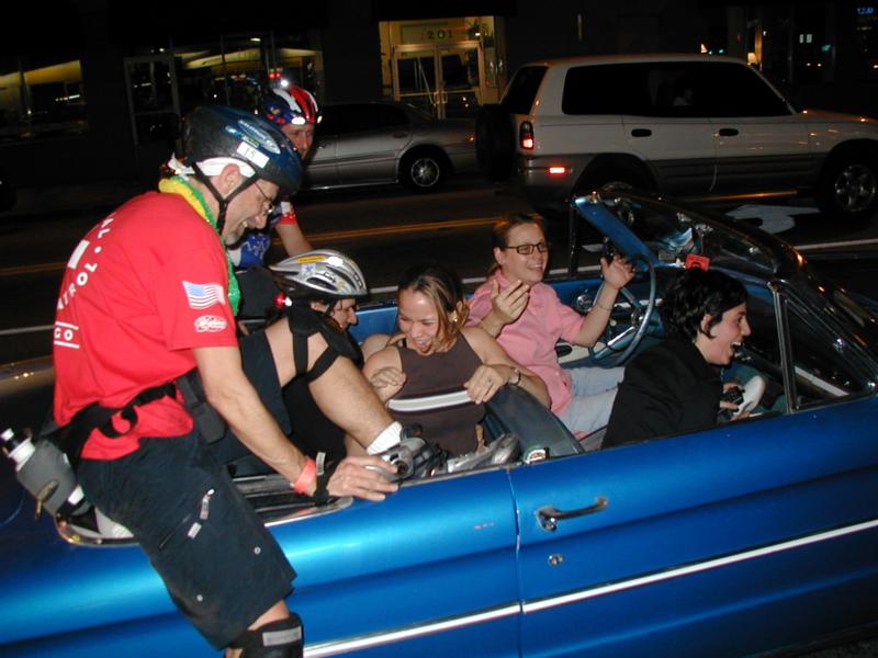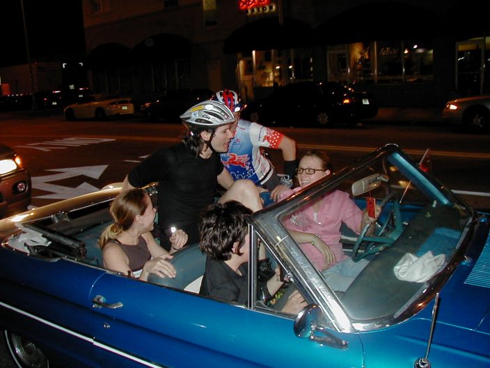 The bobarazzi riding down the boulevard, top down and wait; Sam where's your hand?